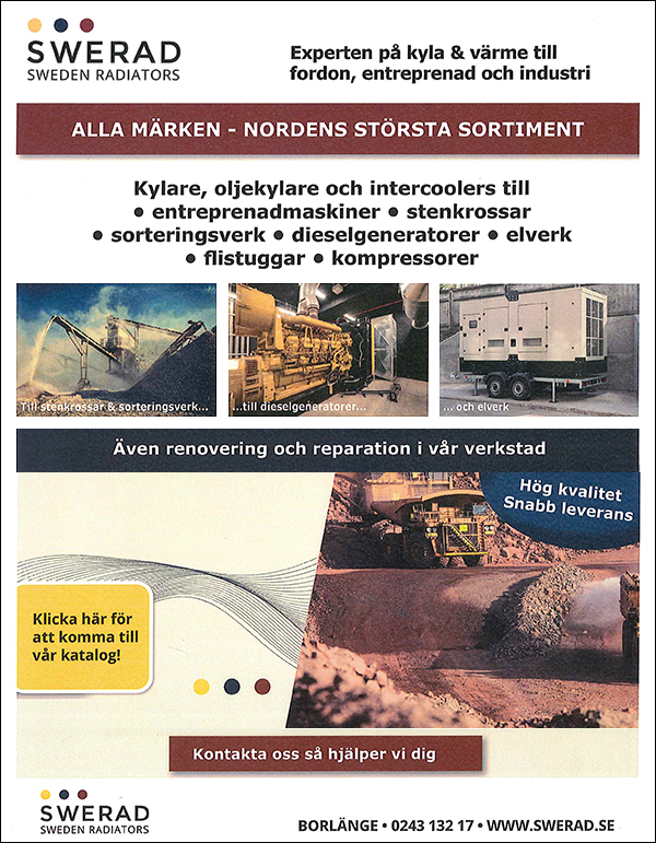 The business is aimed at customers in heavy industry, construction, forestry, mining and the transport sector. By combining a wide standard range with customized manufacturing and technical expertise, Swerad helps its customers minimize downtime and ensure reliable systems even in harsh environments.